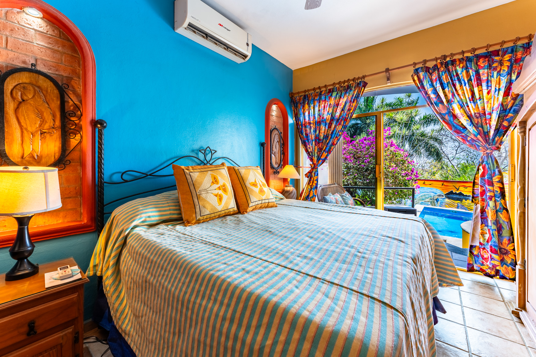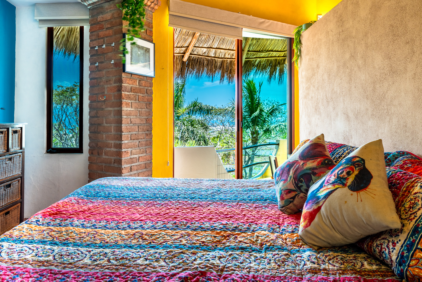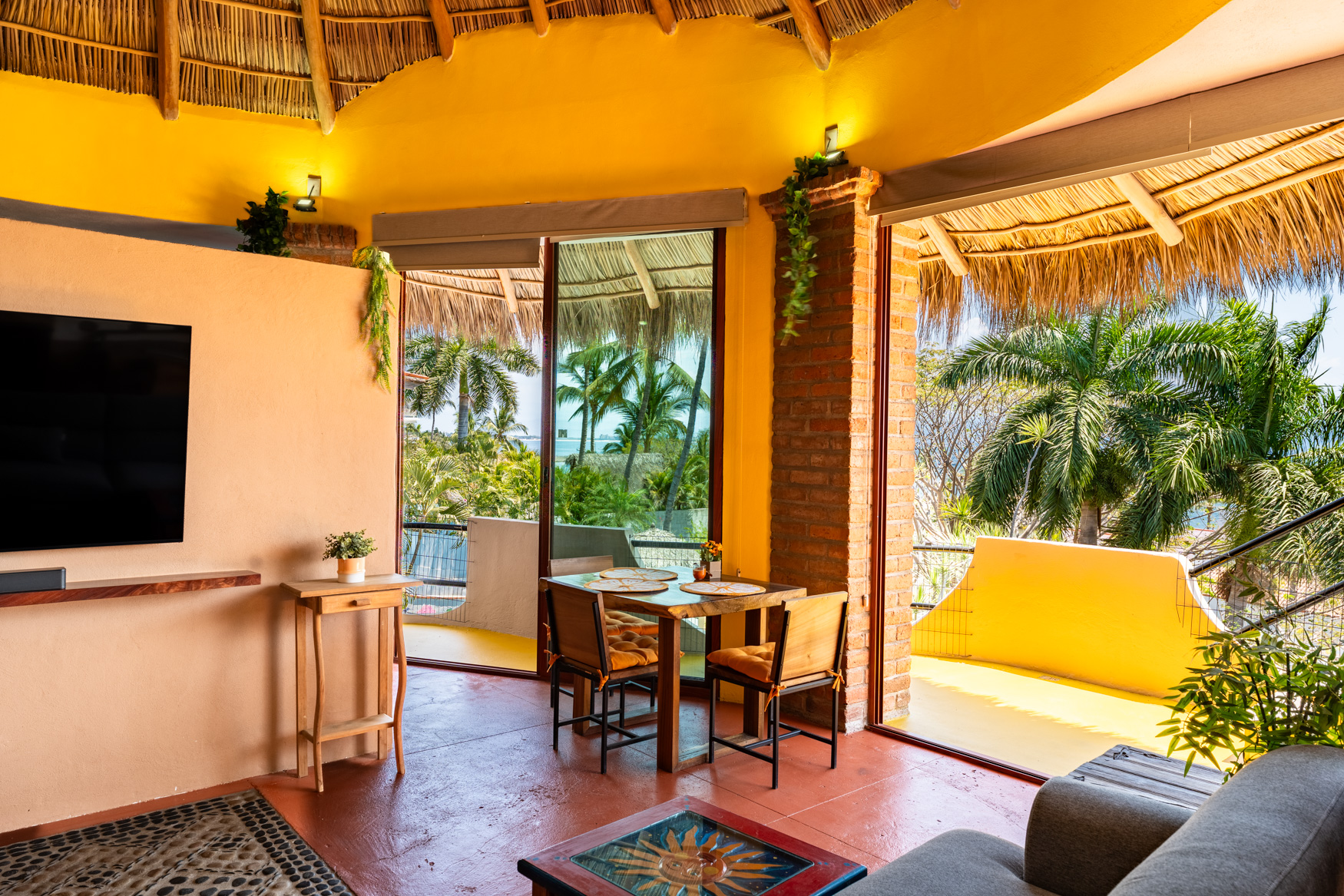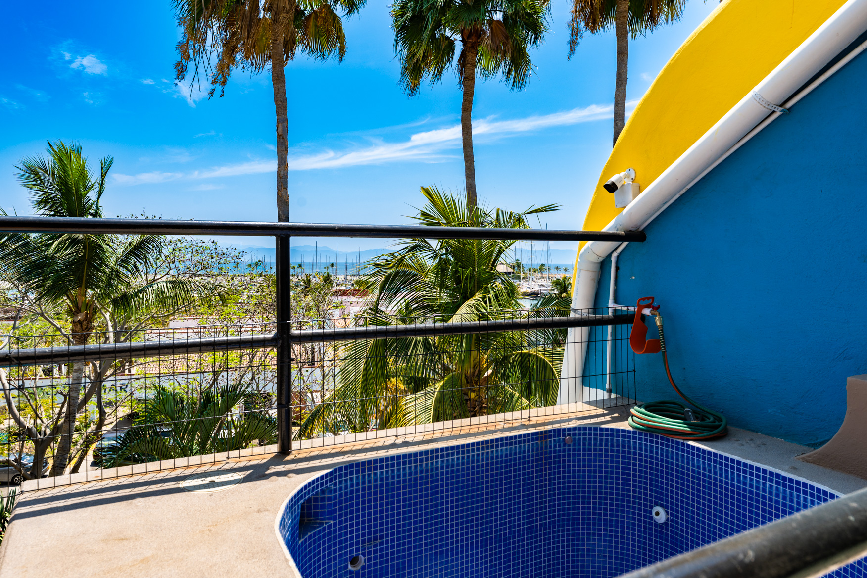 Marina La Cruz Jewel-THREE HOMES in ONE! Casitas del Mar is a quiet & cosy ”mini-neighborhood” of 3 independent & unique homes, an a beautiful property featuring lush gardens and great amenities. All homes have direct independent access to the amazing pool and lounging areas. 1. EL BUNGALOW: a ground level live-work studio home with garden views, featuring a complete bathroom and a kitchenette. High ceilings give an open and airy feel. 2. CASITA JULIETA : a 1-bedroom ground level home with complete kitchen and greatroom plus a spacious pantry 3. La Palapa: a 1-bed, upper level, open plan suite with a beautiful, high-vaulted palapa ceiling and a functional bar/kitchen area. Enjoy spectacular views of the ocean and the marina.