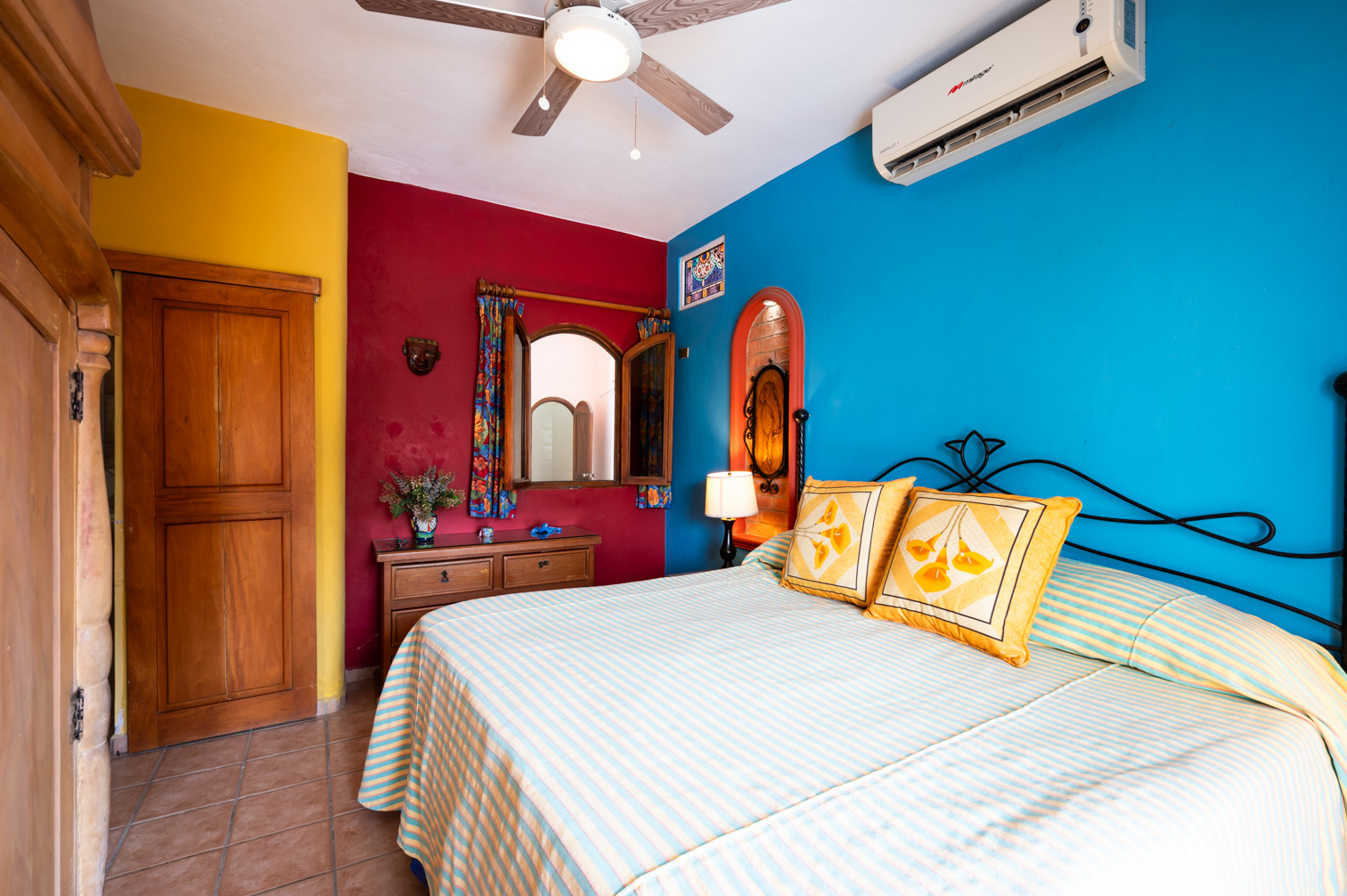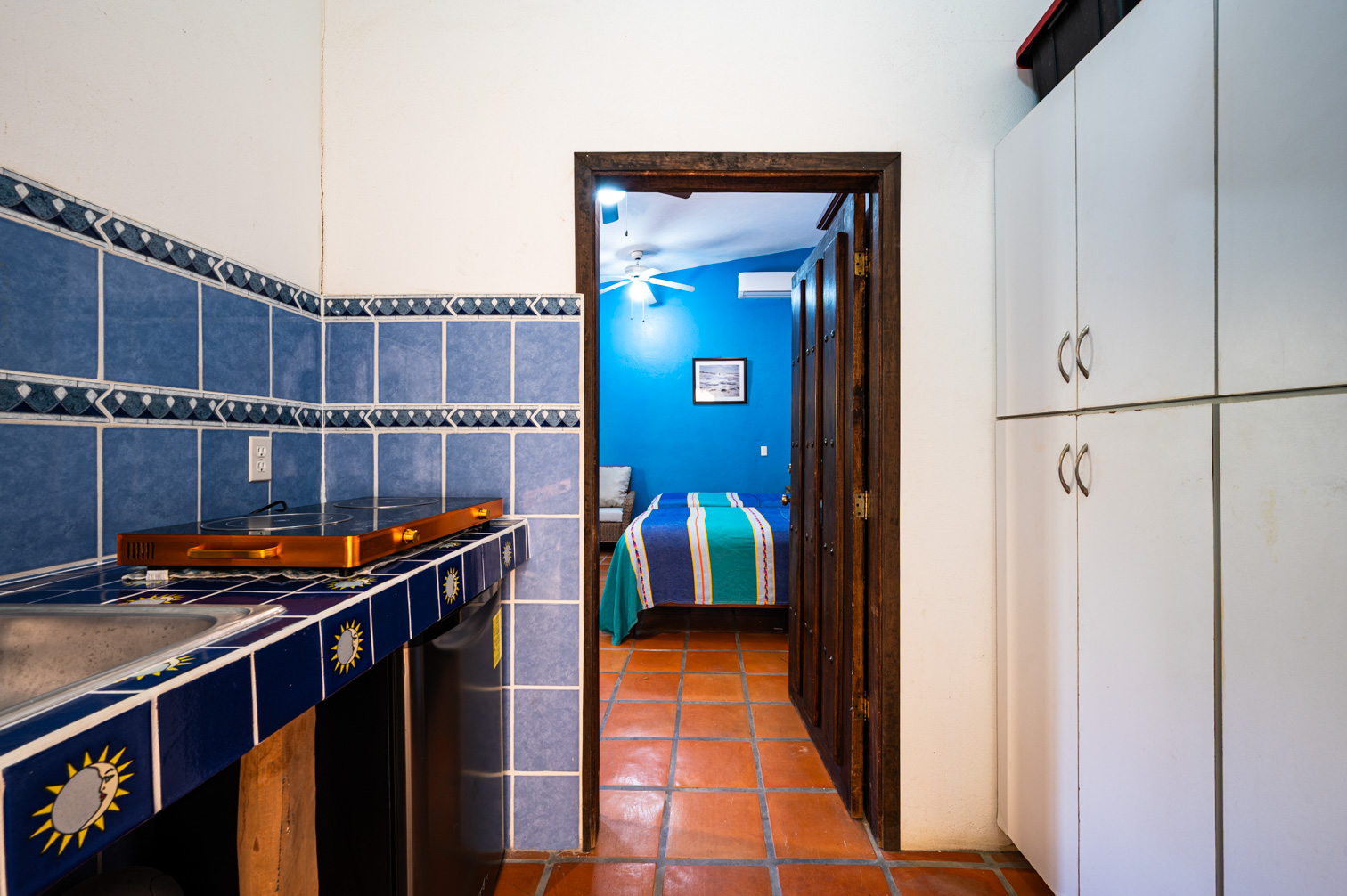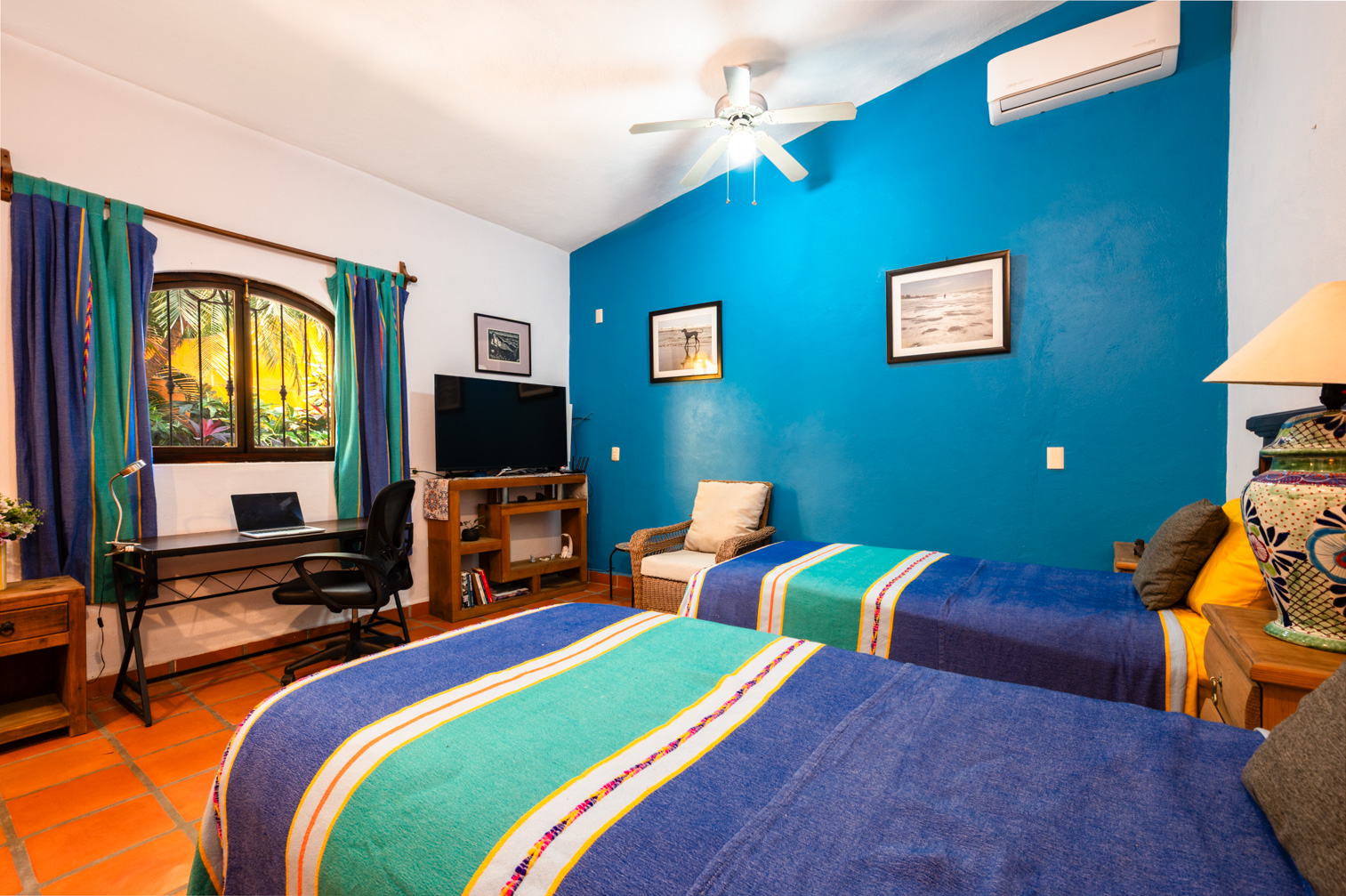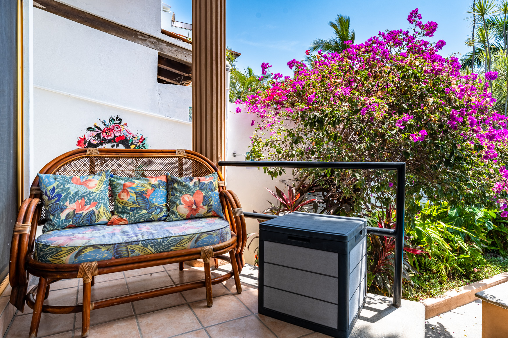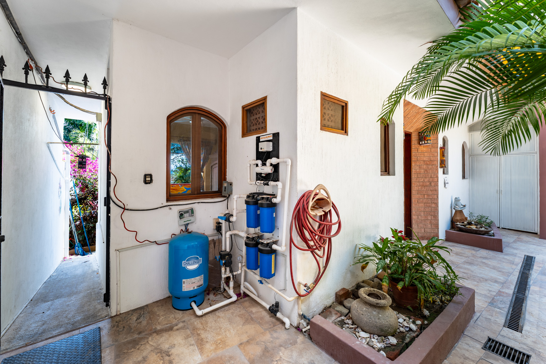 Marina La Cruz Jewel-THREE HOMES in ONE! Casitas del Mar is a quiet & cosy ”mini-neighborhood” of 3 independent & unique homes, an a beautiful property featuring lush gardens and great amenities. All homes have direct independent access to the amazing pool and lounging areas. 1. EL BUNGALOW: a ground level live-work studio home with garden views, featuring a complete bathroom and a kitchenette. High ceilings give an open and airy feel. 2. CASITA JULIETA : a 1-bedroom ground level home with complete kitchen and greatroom plus a spacious pantry 3. La Palapa: a 1-bed, upper level, open plan suite with a beautiful, high-vaulted palapa ceiling and a functional bar/kitchen area. Enjoy spectacular views of the ocean and the marina.